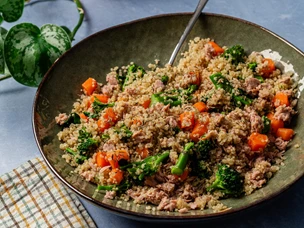 Após este tempo, junte a quinoa, mexa e deixe tostar ligeiramente.