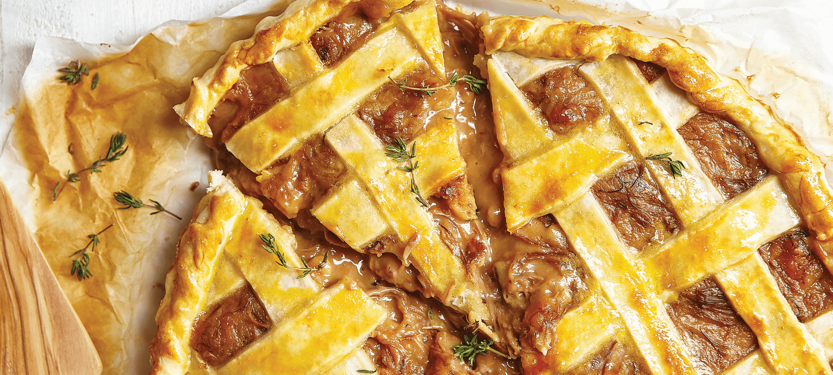 Adicione mais um pouco de azeite, junte o louro e refogue a cebola picada e os dentes de alho picados. Acrescente o bacon picado, refresque com o vinho e raspe o fundo da frigideira.