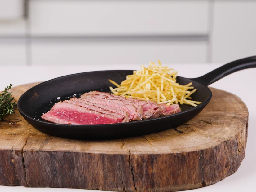 Coloque a carne temperada com sal e, assim que ficar tostada, vire.