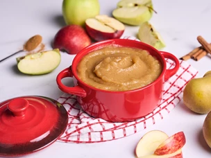Coza as maçãs, descascadas e cortadas e escorra-as.