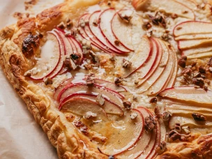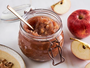 Derreta o chocolate em banho-maria. Pode aproveitar a água da cozedura das maçãs.