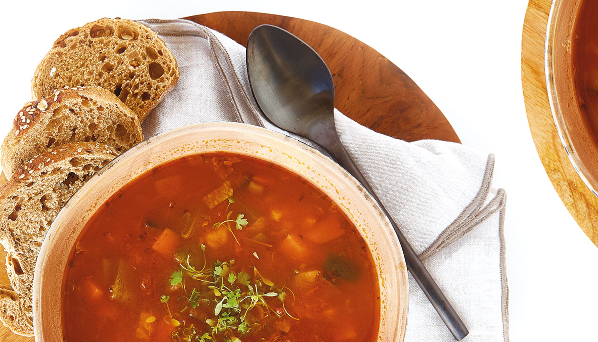 Coloque o pão cortado aos cubos no fundo de cada prato e, adicione os pedaços de corvina e regue com o caldo de tomate. Para finalizar, polvilhe com coentros picados.