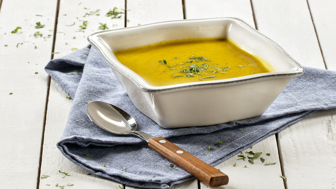 Quando os legumes estiverem cozidos triture a sopa e deixe em lume brando. Nesta altura deve retificar os temperos e adicionar mais água se achar necessário.