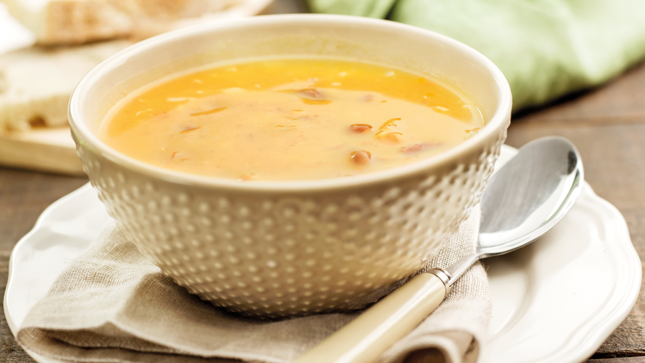 Sirva a sopa de ervilhas e polvilhe coentros picados e amêndoa tostada picada.