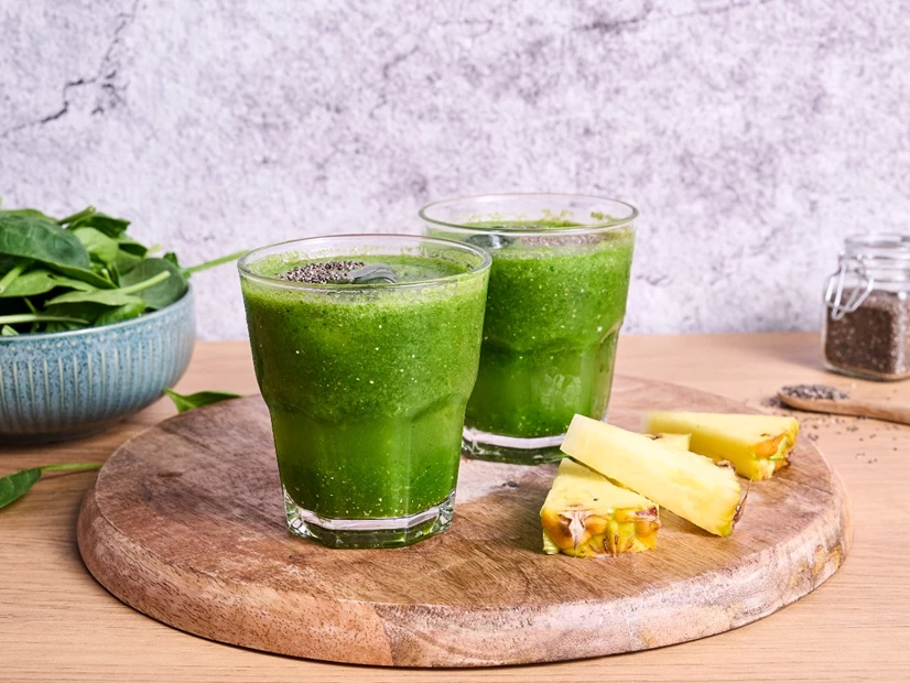Este sumo verde de abacaxi, espinafres, gengibre e pepino é perfeito para acelerar o metabolismo e um aliado para eliminar toxinas. Veja como é saboroso e fácil de preparar.