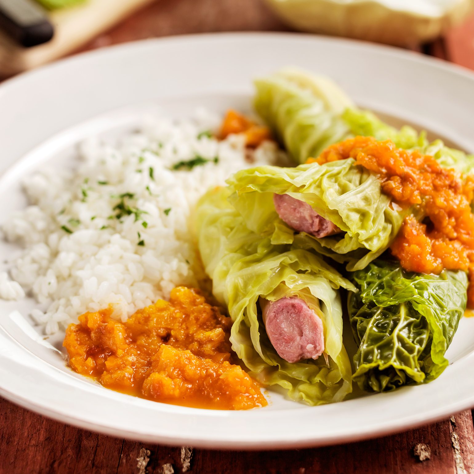 Recheie os wraps com a rúcula e o preparado anterior. Enrole os wraps e feche com um palito.