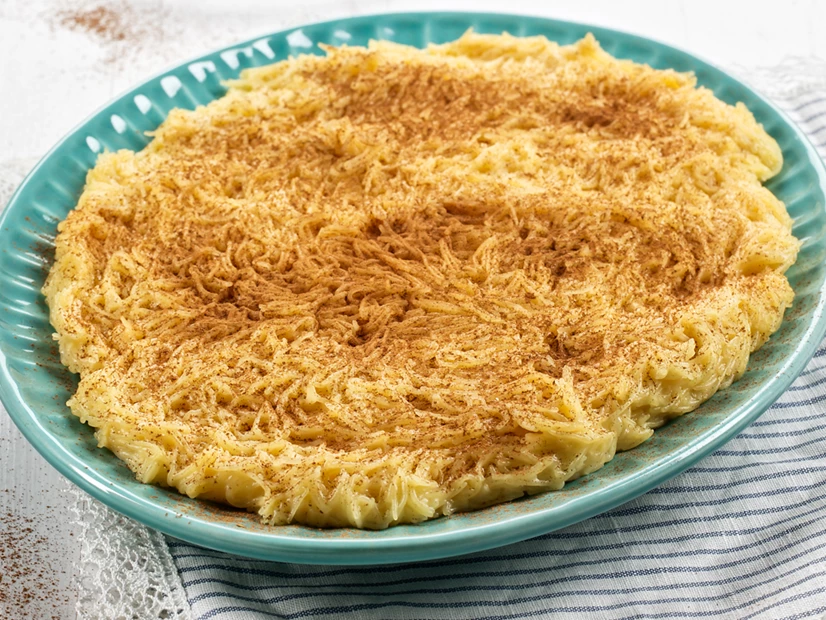 Retire o pau de canela e a casca de limão. Disponha a aletria numa travessa e polvilhe com canela em pó a gosto.