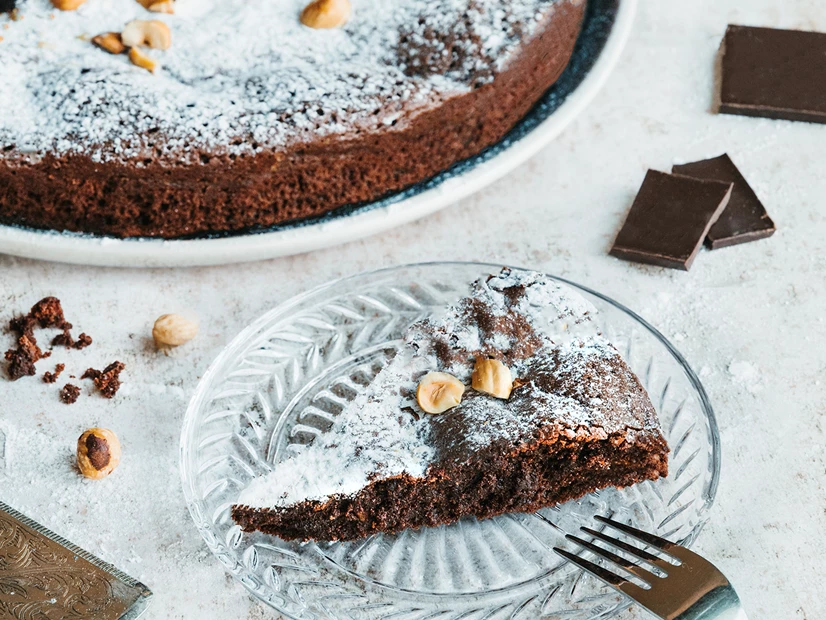 Deixe arrefecer e polvilhe com açúcar em pó. Decore com avelã tostada grosseiramente picada.