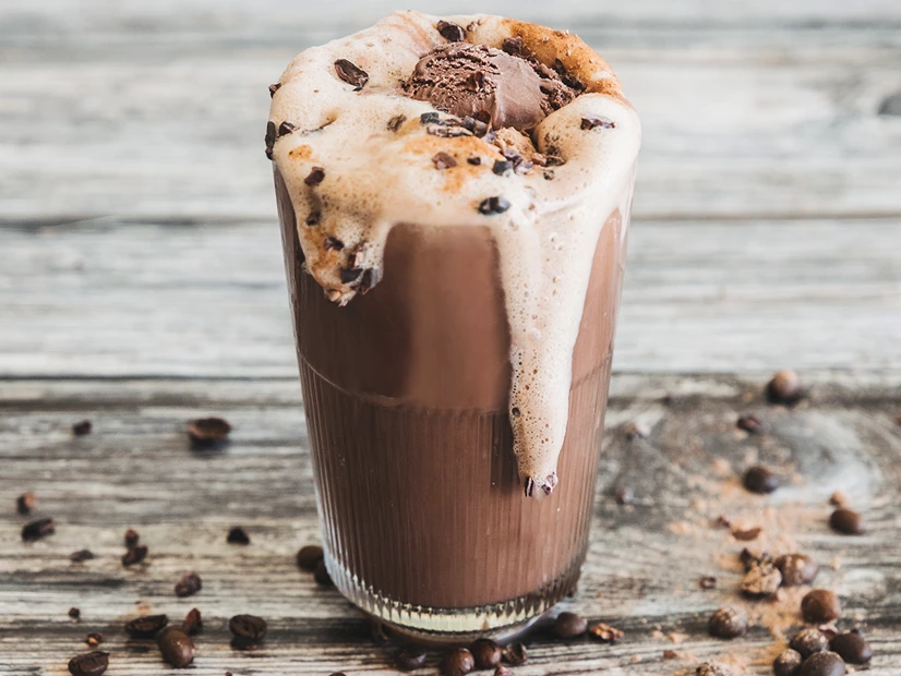 Coloque no copo o café já frio (pode ser expresso ou solúvel, consoante prefira mais ou menos forte), o gelado de chocolate, o leite, o gelo e o açúcar (opcional). Programe 2 minutos na velocidade 10.