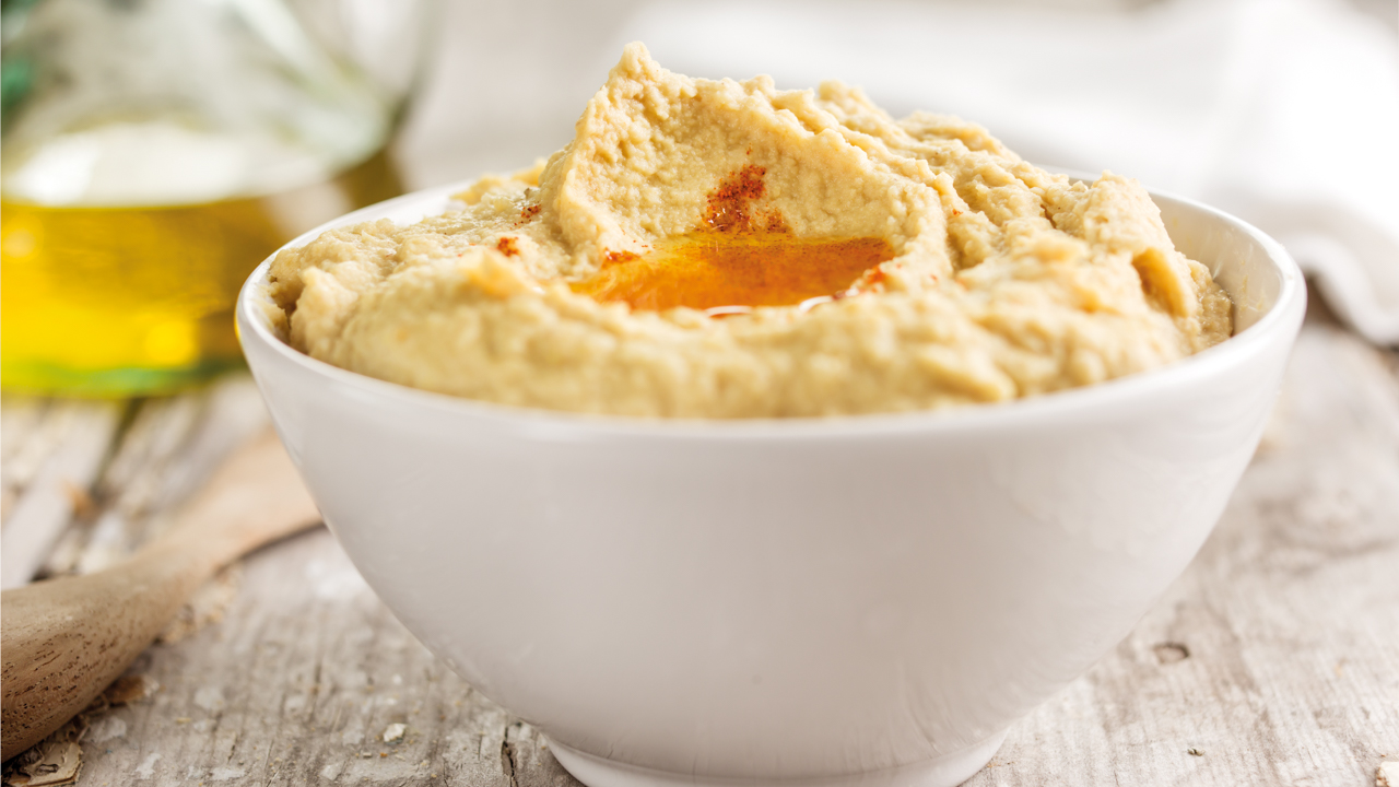 Coloque o grão‑de‑bico escorrido no copo. Junte os restantes ingredientes e programe: 2 minutos na velocidade 6.