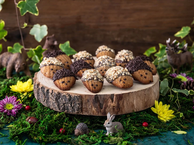 Mergulhe as madalenas no chocolate derretido até meio, cubra com a amêndoa torrada. Deixe solidificar e decore a gosto.