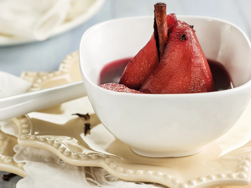 Descasque as peras, retire os caroços e corte-as em quartos. Disponha-as na bandeja de vapor e reserve.