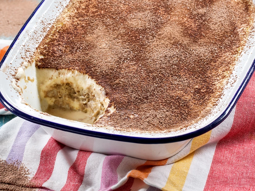 Numa taça retangular grande (ou duas médias), comece por colocar um pouco da mistura. Molhe rapidamente os palitos de champanhe no café, dispondo‑os por cima do preparado (não devem ficar excessivamente molhados). Repita a operação até formar várias camadas, terminando com o creme.