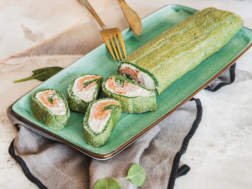Barre a massa com este creme e coloque fatias de salmão por cima (e, opcionalmente, algumas gotas de sumo de limão). Enrole como se fosse uma torta e sirva morno ou frio.