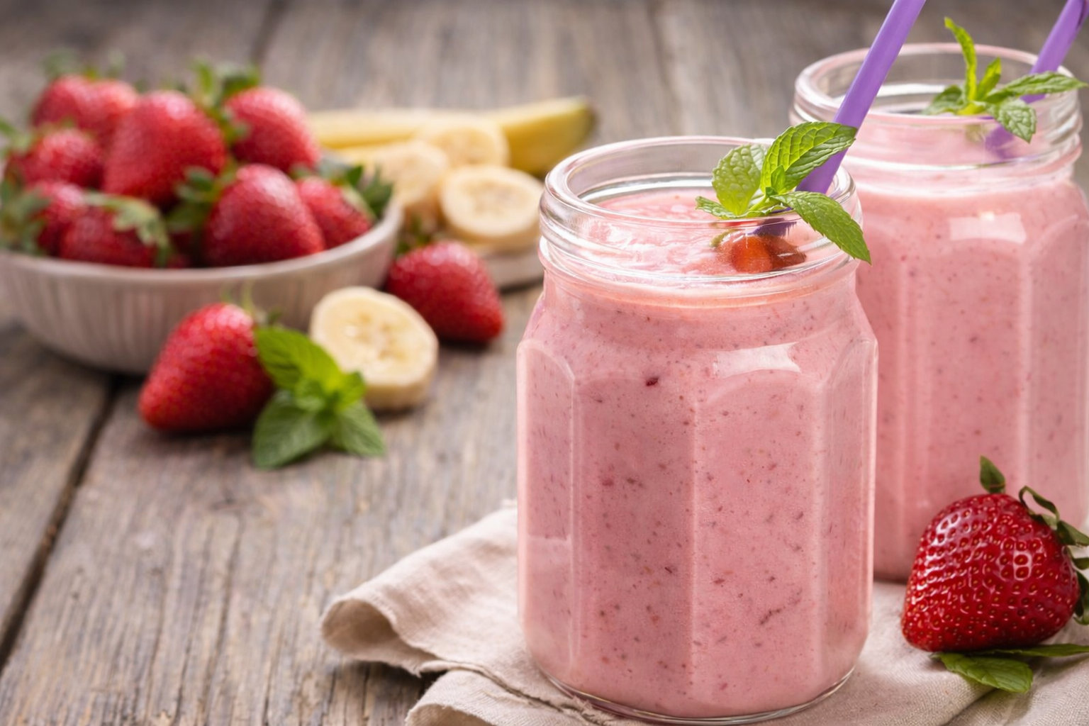 Batido de iogurte com banana e morango